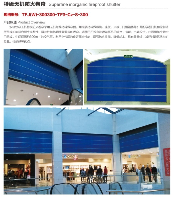 提升式防火卷簾門是我公司根據(jù)現(xiàn)在建筑消防規(guī)范需求,開(kāi)發(fā)的一種新型機(jī)械傳動(dòng)模式,它的門臉和普通雙軌雙簾防火卷簾的材料相同,對(duì)電機(jī)組合機(jī)械組驚醒了改進(jìn),從而達(dá)到了合適大跨度的防火分區(qū)。此種卷簾可做弧線轉(zhuǎn)完。適合復(fù)雜的建筑防火分區(qū)。